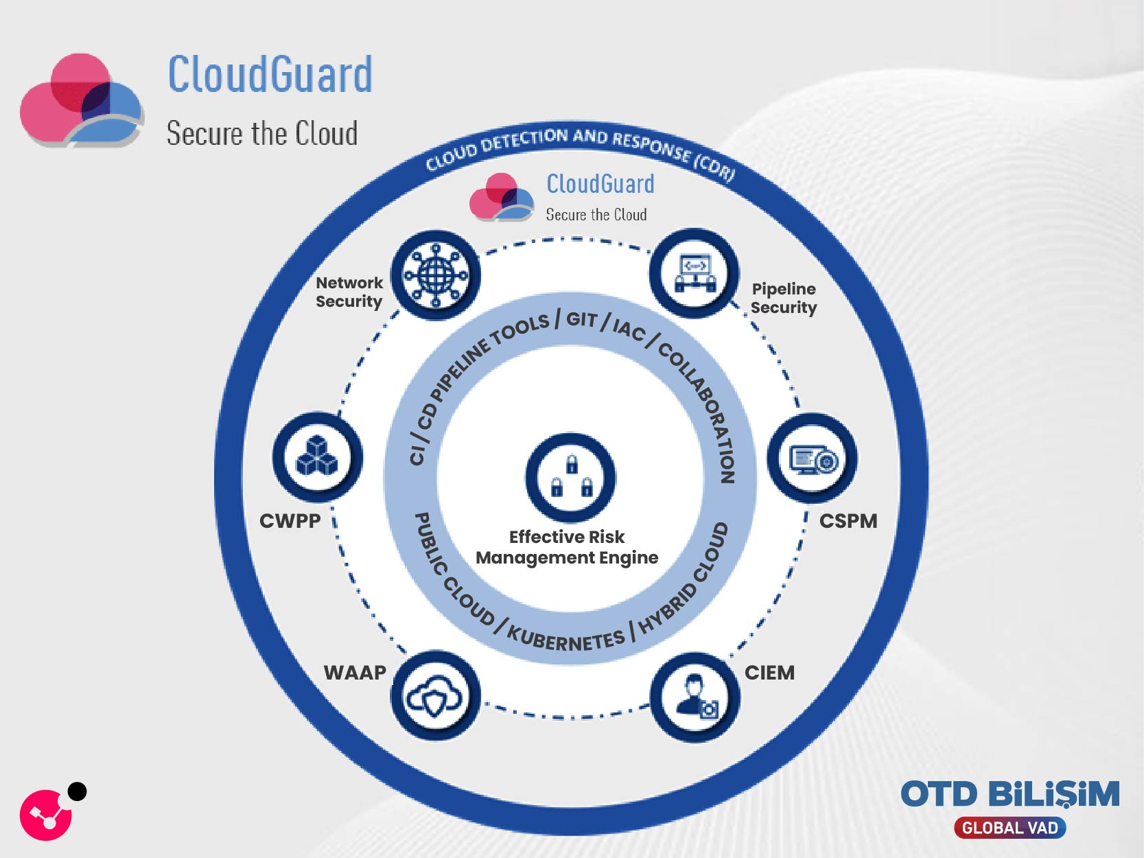 Check Point CloudGuard, kurumların kullandığı genel, özel ve hibrit bulut ortamlarını uçtan uca korumak için geliştirilmiş kapsamlı bir güvenlik çözüm ailesidir. AWS, Azure, Google Cloud, Kubernetes gibi yaygın bulut platformlarını destekler ve konfigürasyon hataları, güvenlik açıkları ve yetkisiz erişimleri önceden tespit ederek proaktif koruma sağlar. DevOps süreçlerine entegre olarak sürekli güvenlik sunması, otomatik görünürlük sağlaması ve uyumluluk denetimlerini desteklemesi en önemli avantajlarıdır. CloudGuard sayesinde şirketler bulut ortamlarını hem tehditlere karşı güvence altına alır hem de regülasyonlara uyumluluğu kolaylıkla yerine getirir.