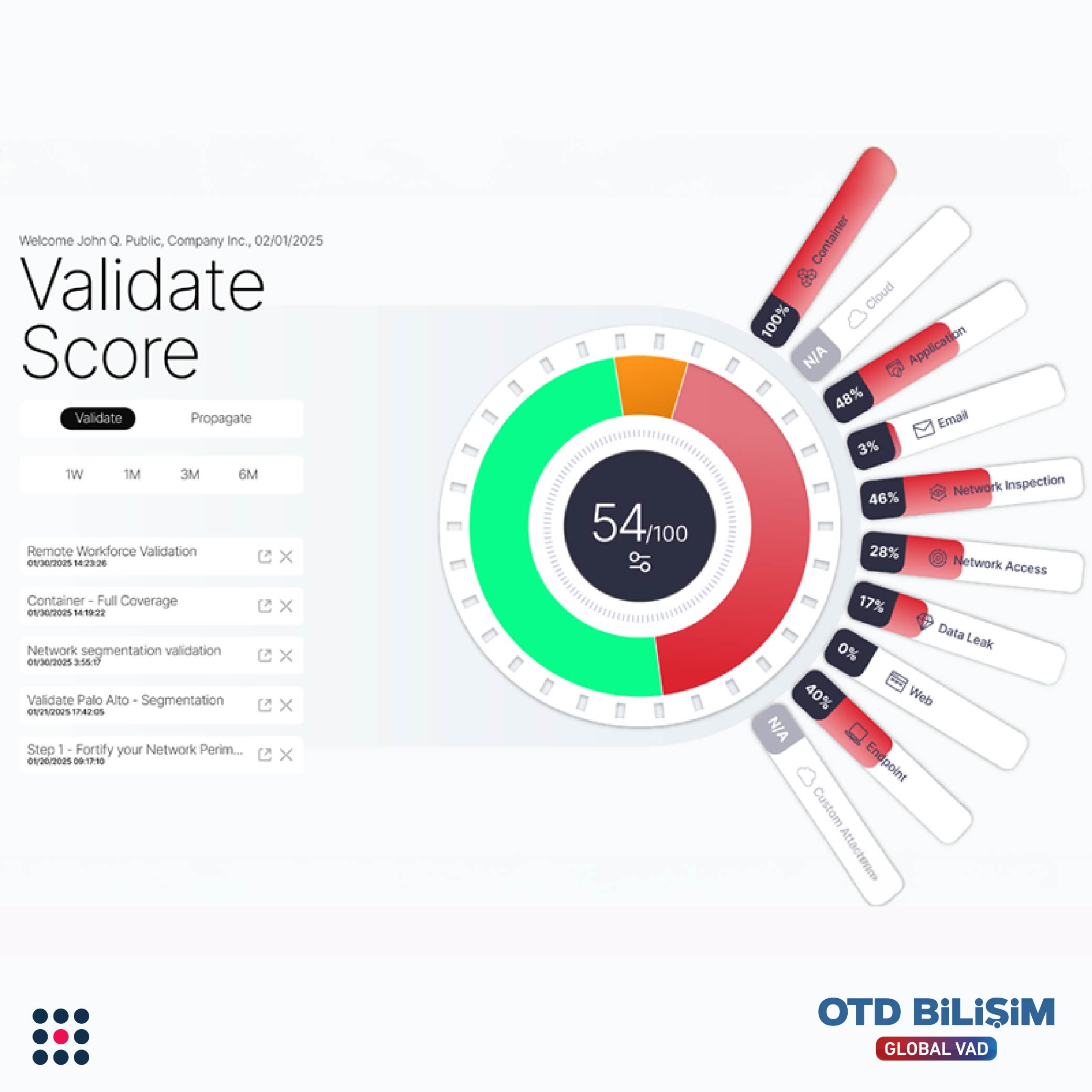 Validate, kontrol etkinliği, tehdit maruziyeti ve siber risk hakkında ölçülebilir içgörüler sunar. Bu sayede kuruluşlar, güvenlik yatırımlarının geri dönüşünü net biçimde görebilir, operasyonel önceliklerini doğru belirleyerek kaynaklarını en etkili şekilde yönlendirebilir.
