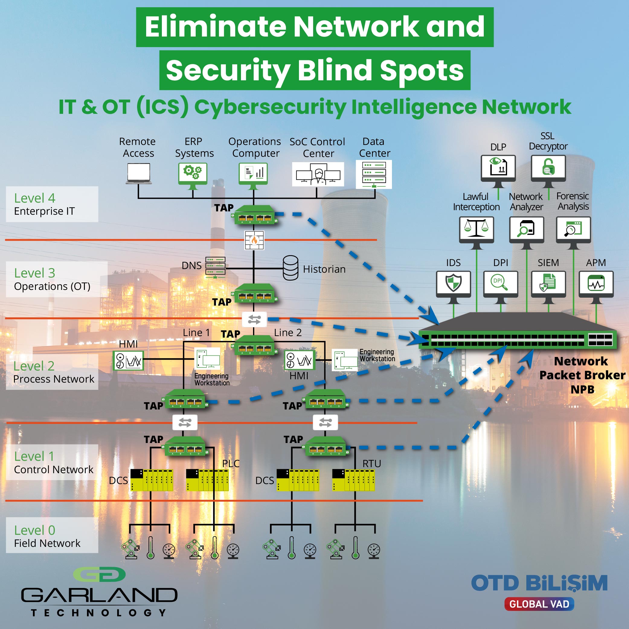 In BT & OT (EKS) critical infrastructure, visibility, continuous monitoring, operational continuity, measurability of network performance, and cybersecurity assurance are the core goals every organization strives to achieve. Garland Technology, with its developed Secure Packet Mirroring Technology, ensures 360° visibility, leaving no blind spots in your network. The BT & OT (EKS) Cybersecurity Intelligence SoC network, which is parallel to your network, not only manages current threats but also proactively controls potential future risks. Garland Technology offers the most reliable, cost-effective, easily deployable, and scalable solutions in the industry. With its Active / Passive Network TAP and Network Packet Broker products, it provides 100% packet visibility to your security tools, eliminates operational downtimes, and helps you build a strategic network security infrastructure. Thus, your organization achieves full visibility in its security network structure and attains uninterrupted operational continuity, increasing the value of your network.